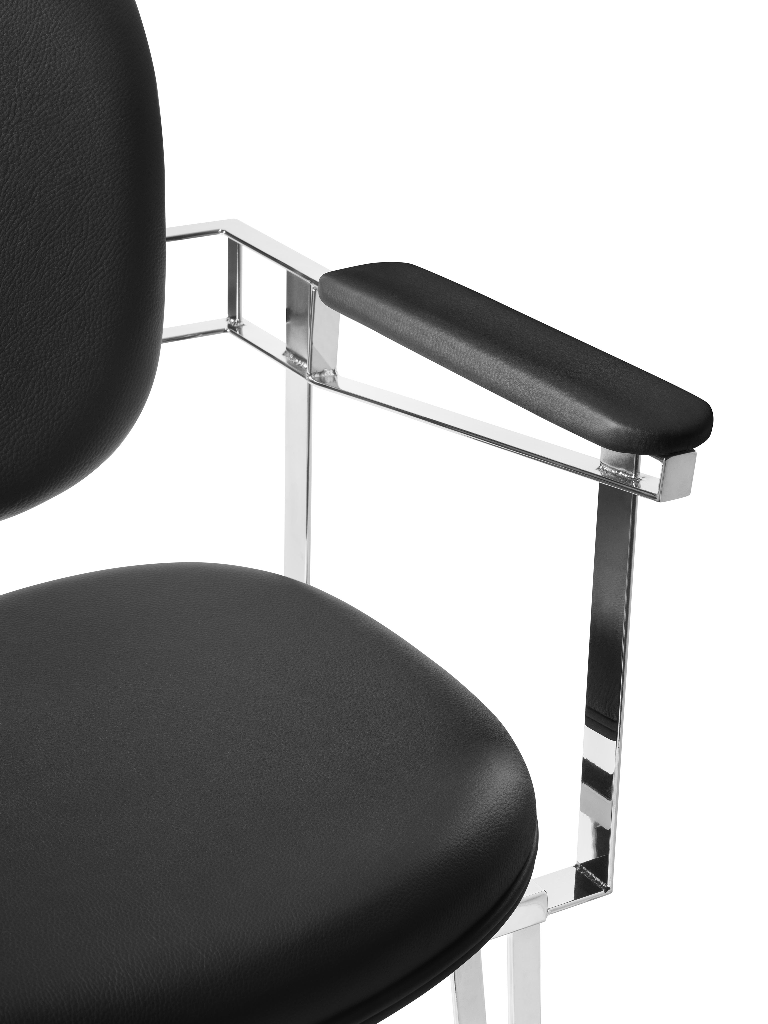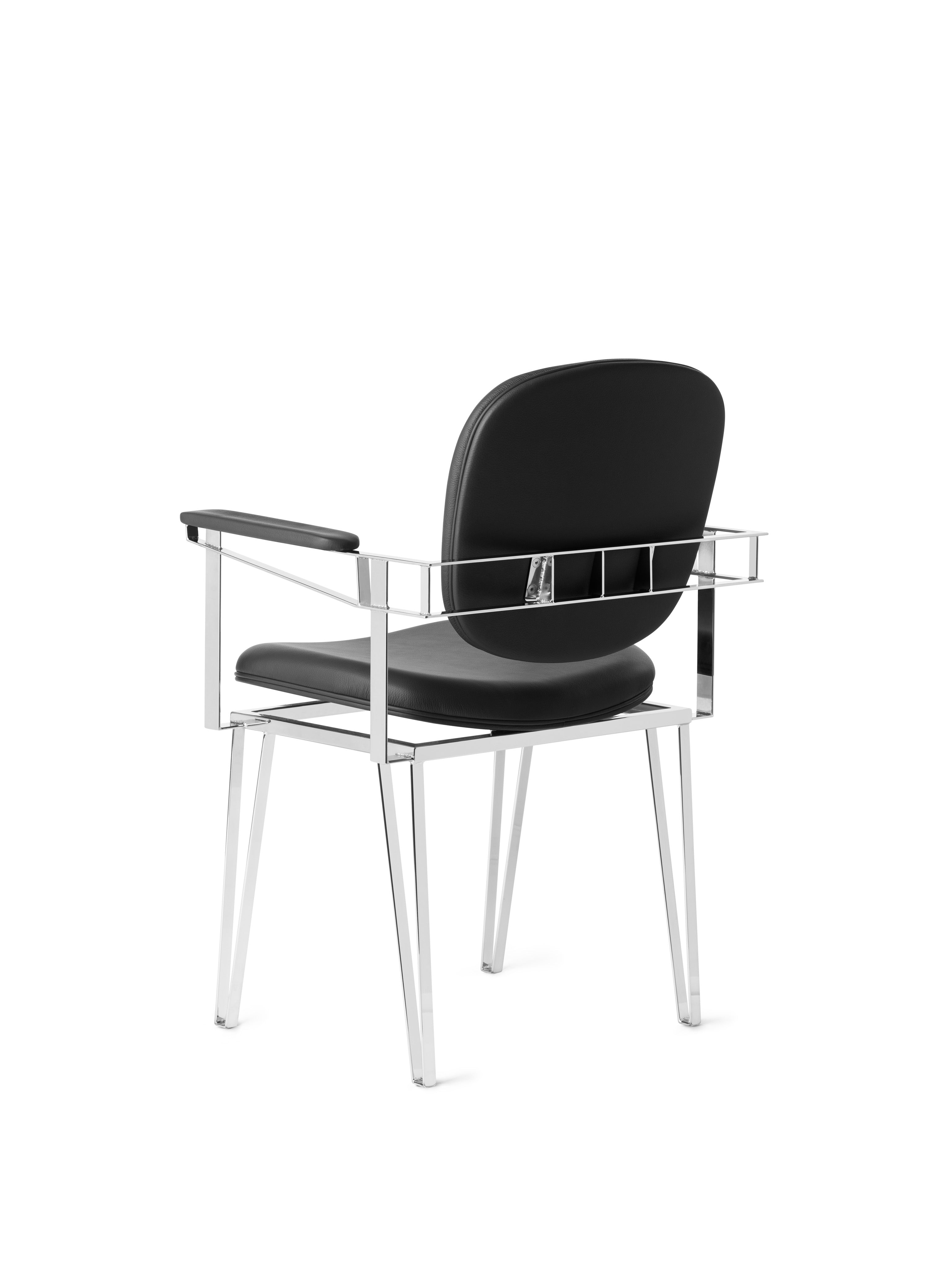 Inspired by angular architecture, the chair is defined by a slender steel structure and carefully balanced proportions. The open construction creates layered surface interactions that add material depth, allowing each detail to reveal itself over time. Developed for hotel suites where visual clarity, comfort and durability are essential, the Stratum Chair is equally suited for refined private interiors.