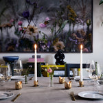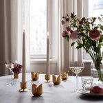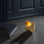 This solid tealight holder, made from polished brass and handcrafted in Sweden, is a refined balance of romantic allure and geometric precision. The interplay of light and shadow subtly echoes the delicate curvature of a tulip, creating visual understated grace.